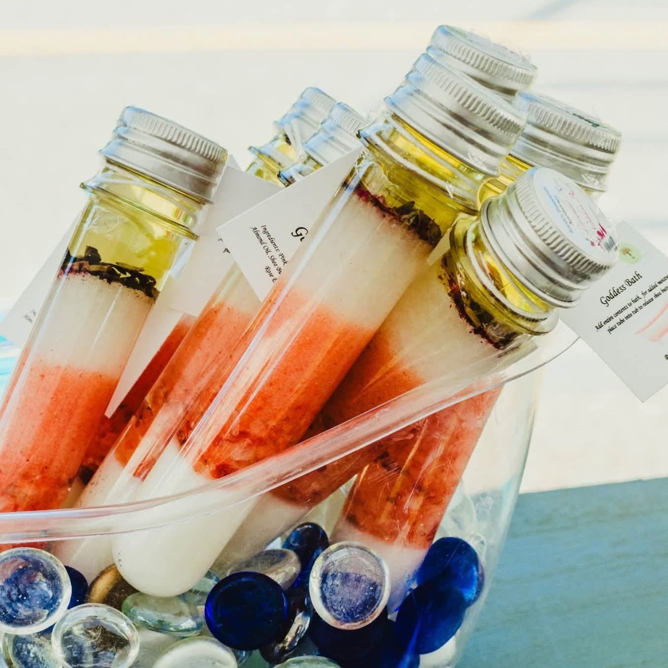 Soak away the day and step into your inner goddess energy with our handcrafted Goddess Bath tubes. Each one is lovingly layered with: